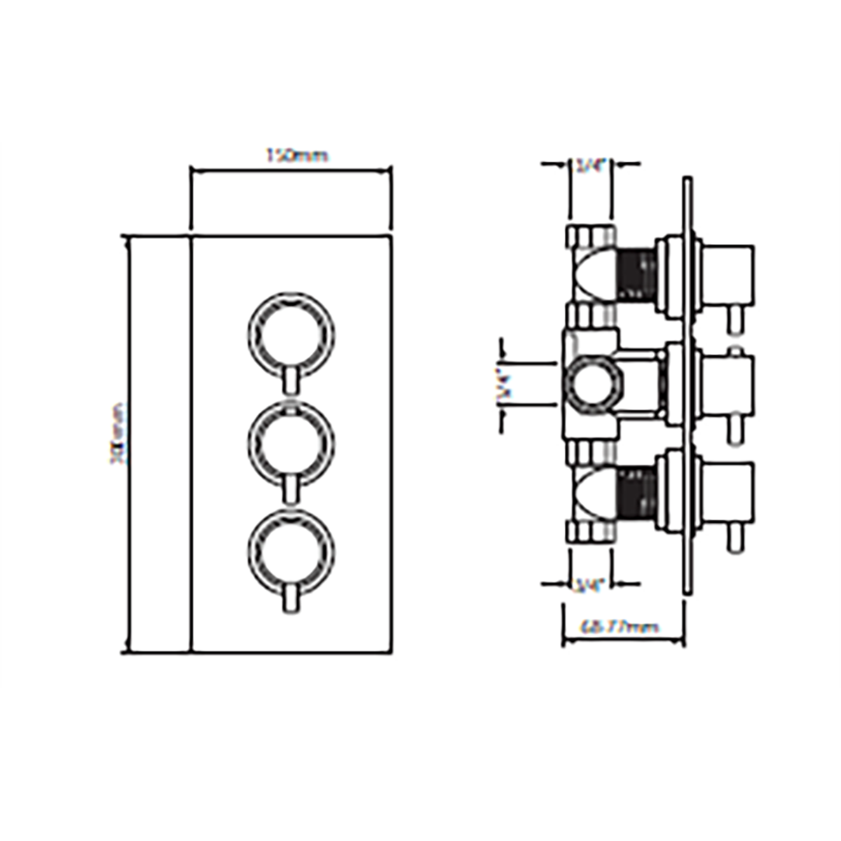 Bocchi Ankastre Termostatik Duş Bataryası 3 Çıkışlı, 150x300 mm (5450-0006)