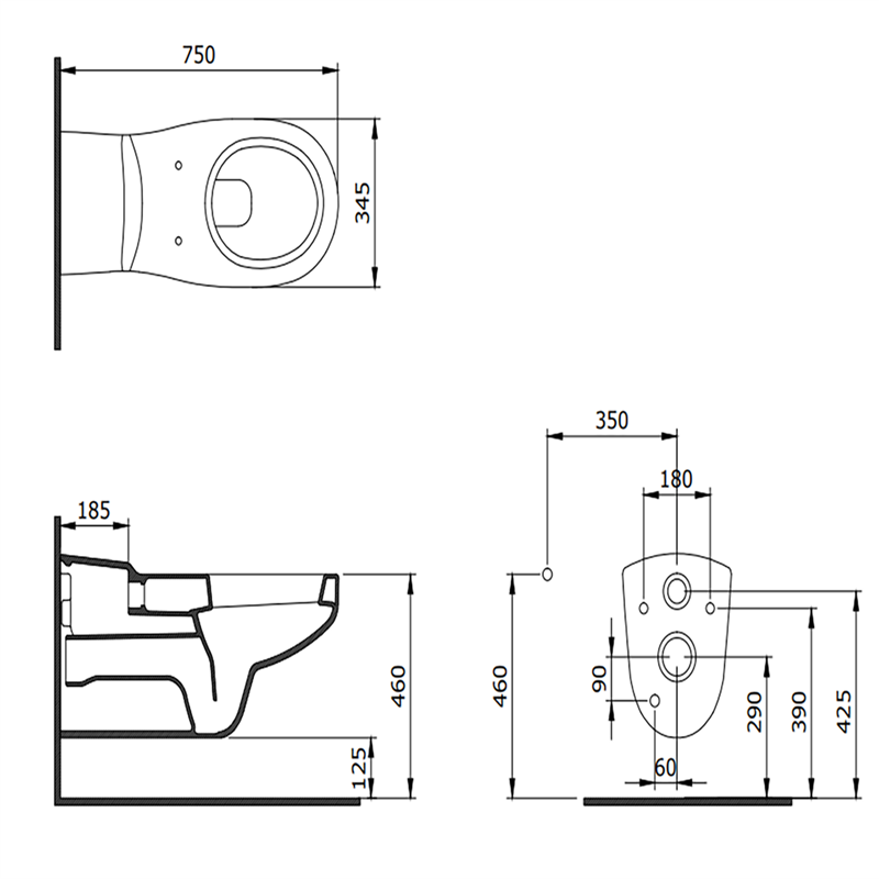 Bocchi Bedensel Engelli Asma Klozet 75 cm, Parlak Beyaz (2012-001-0128)