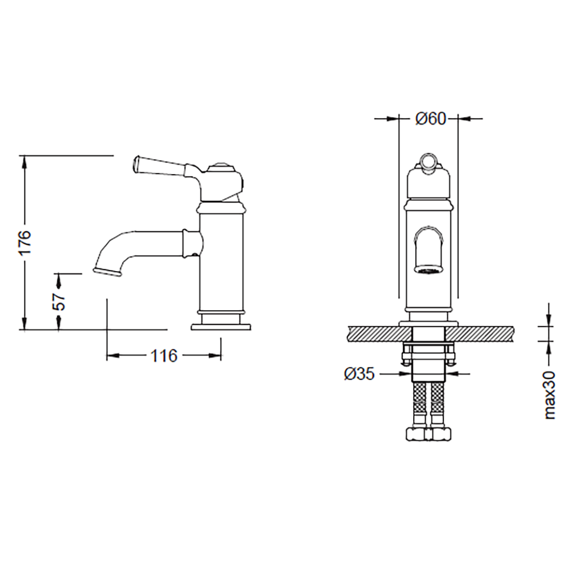 • Çıkış ucu uzunluğu: 116 mm