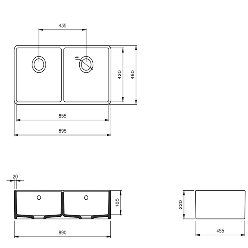 Bocchi Lavello 90 cm Mutfak Eviyesi Parlak Beyaz (1631-001-0140-01)