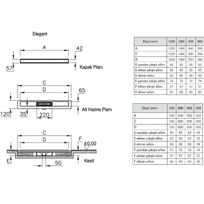 Vitra Elegant Duş Kanalı 100 cm DK100 Yandan S H:80 Parlak Krom (59980272000)