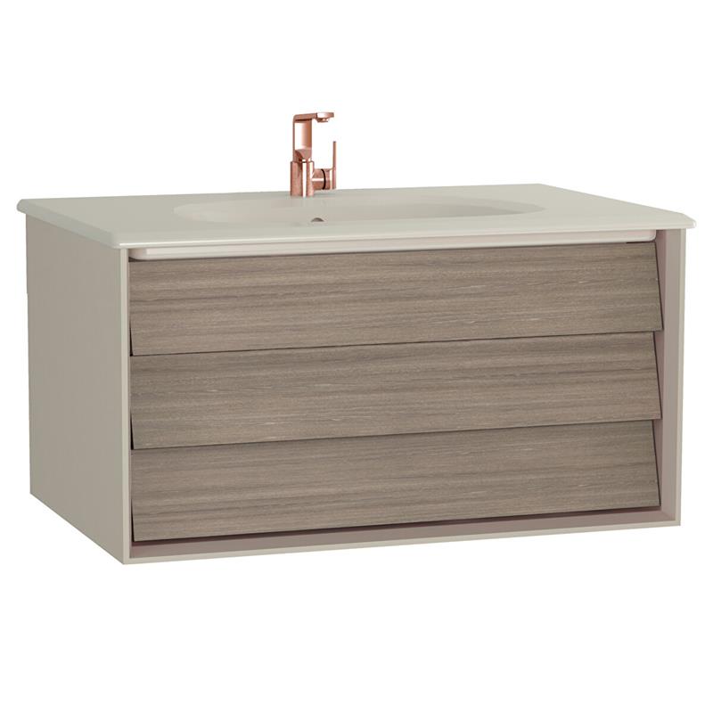 Vitra Frame Lavabo Dolabı 80 Cm, Bir Çekmeceli Mat Taupe Etajerli Lavabolu, Mat Soft Bej & Moka Meşe (61223)