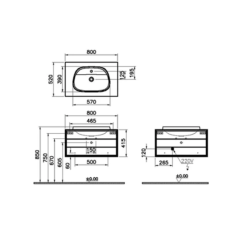 Vitra Frame Lavabo Dolabı 80 Cm, Bir Çekmeceli Tezgahüstü TvShape Lavabolu, Armatür Delikli, Mat Soft Beyaz & Dore Meşe (62286)
