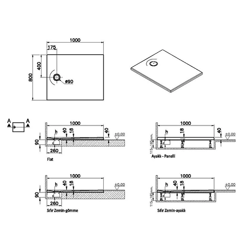 Vitra Leaf Dikdörtgen Duş Teknesi 100x80 cm, Beyaz (65200001000)