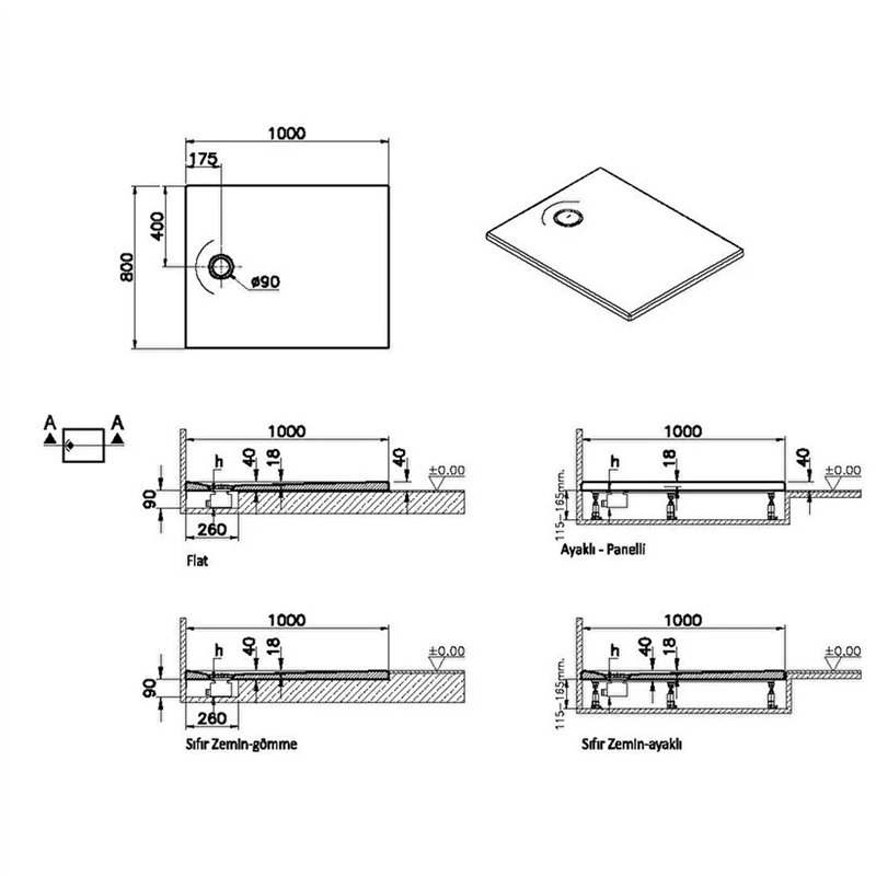 Vitra Leaf Dikdörtgen Duş Teknesi 100x80 cm, Dokulu Taupe (65200001869)