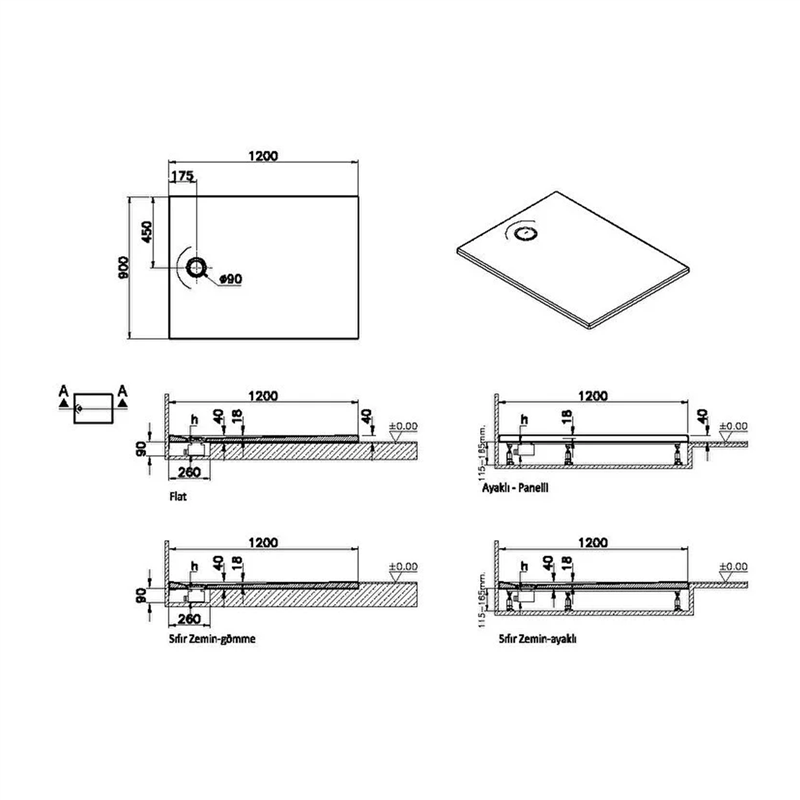 Vitra Leaf Dikdörtgen Duş Teknesi 120x90 cm, Dokulu Beyaz (65280001800)