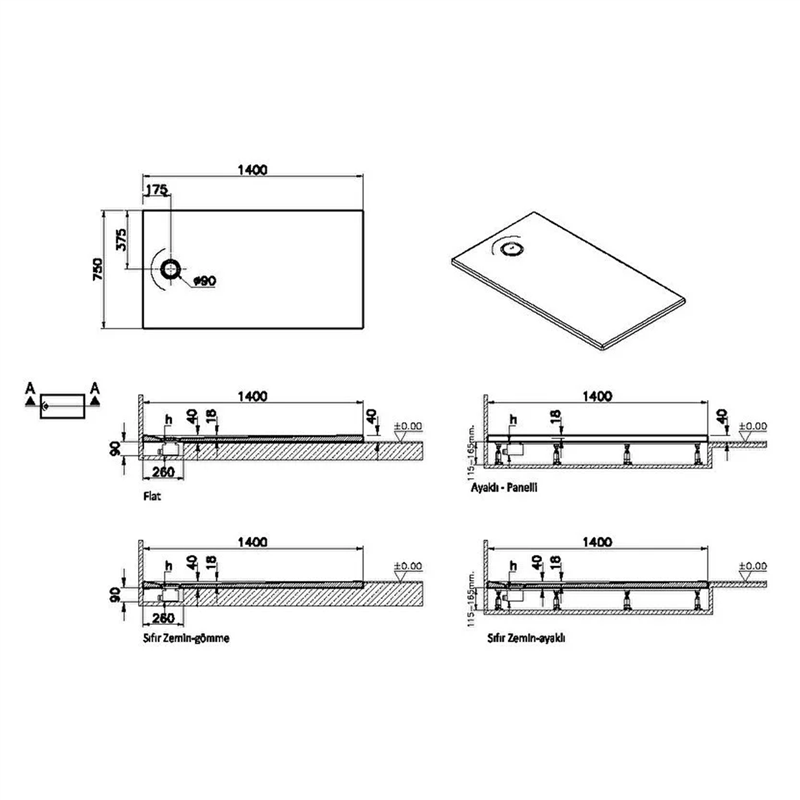 Vitra Leaf Dikdörtgen Duş Teknesi 140x75 cm, Beyaz (65170001000)