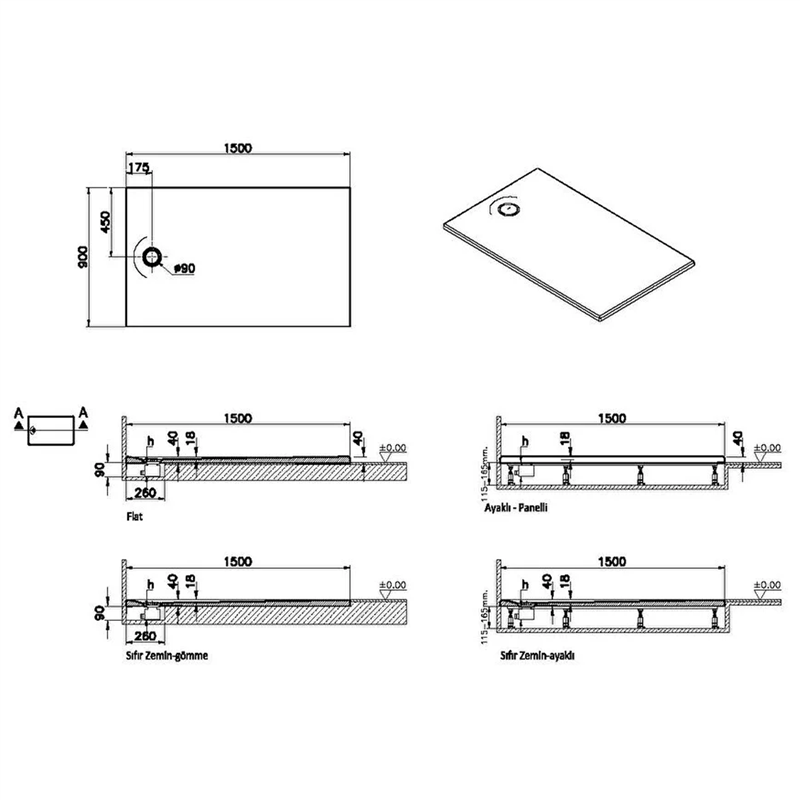 Vitra Leaf Dikdörtgen Duş Teknesi 150x90 cm, Dokulu Antrasit (65300001868)