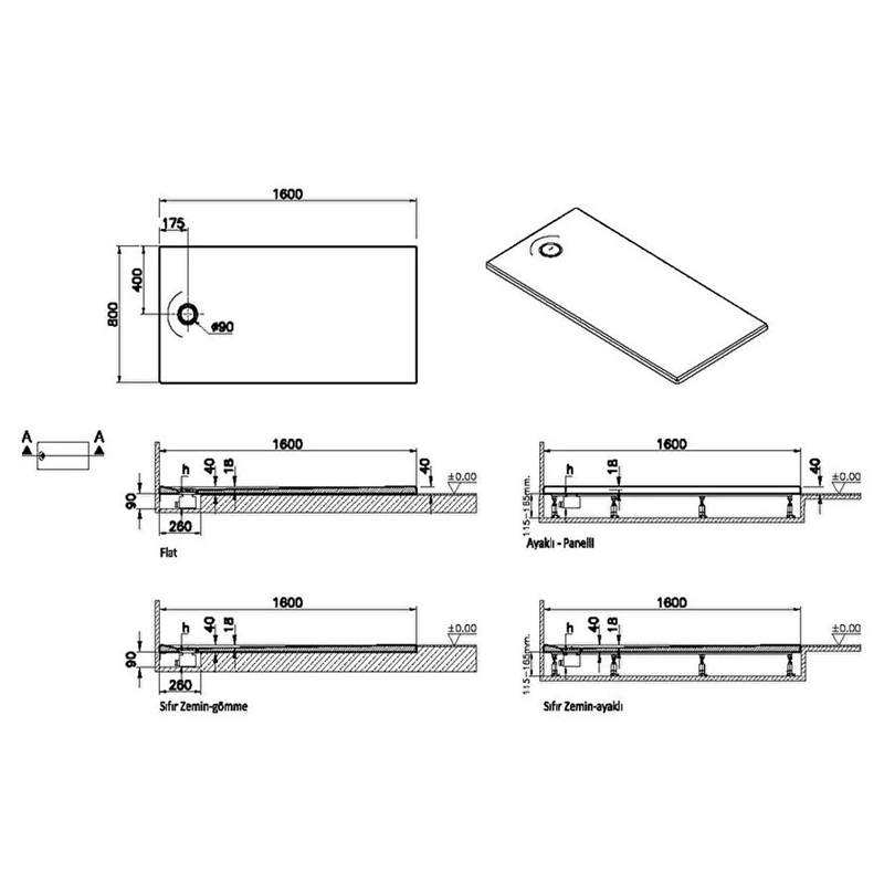 Vitra Leaf Dikdörtgen Duş Teknesi 160x80 cm, Dokulu Taupe (65240001869)