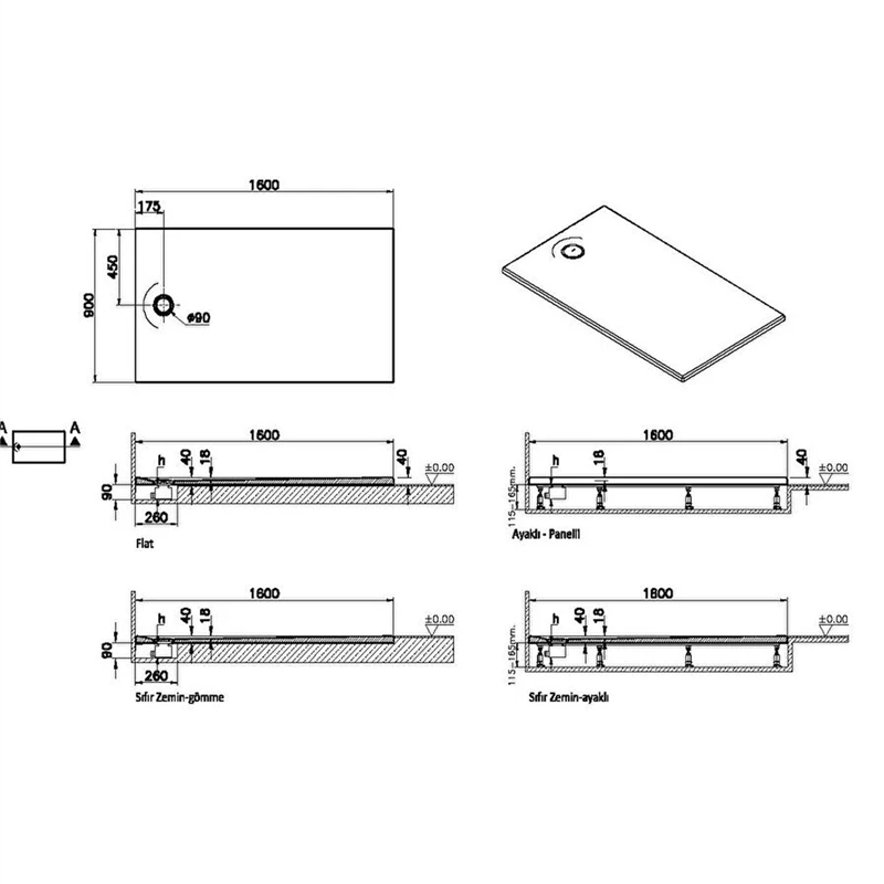 Vitra Leaf Dikdörtgen Duş Teknesi 160x90 cm, Dokulu Beyaz (65310001800)