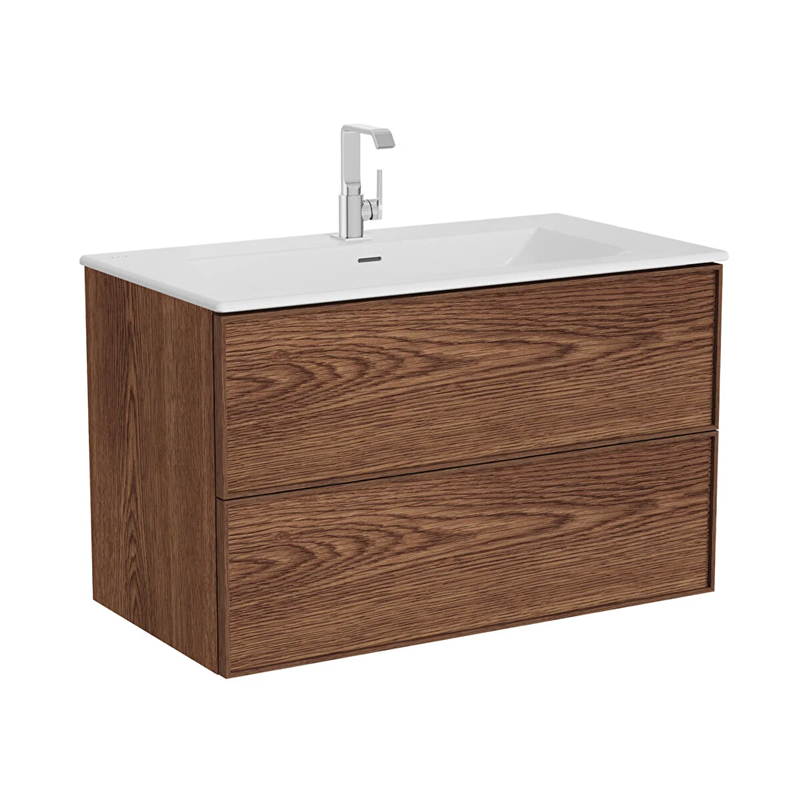 Vitra Metropole Edge Lavabo Dolabı 100 Cm, İki Çekmeceli Etajerli Lavabolu, Ceviz (67156)