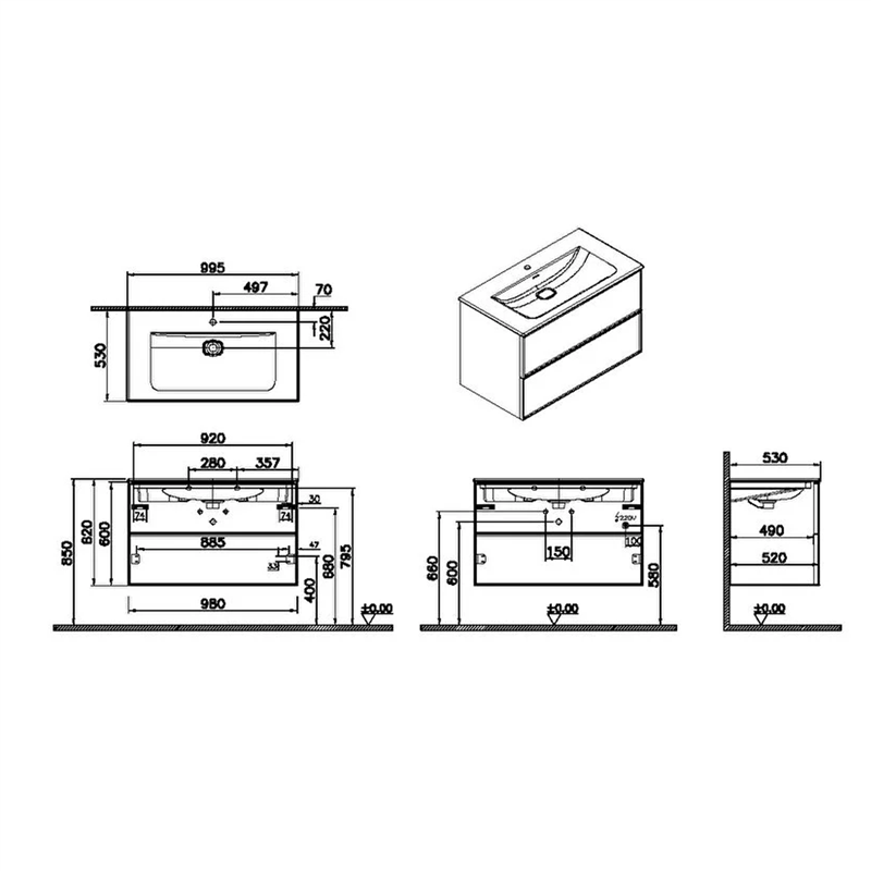 Üst çekmecede 3000K ve IP20, LED iç aydınlatma bulunmaktadır. G sınıfı enerji verimliliğine sahiptir.