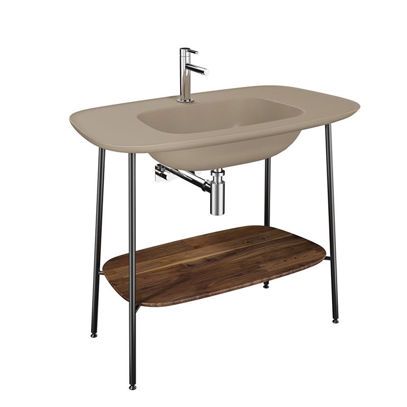 Vitra Plural Lavabo Dolabı 100 Cm Mat Kil Beji Seramik Lavabolu, Koyu Meşe (66048)