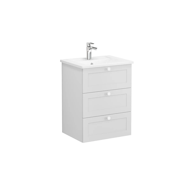 Vitra Root Classic Lavabo Dolabı 60 Cm, Üç Çekmeceli Köşeli Lavabolu, Mat Açık Gri (68898)