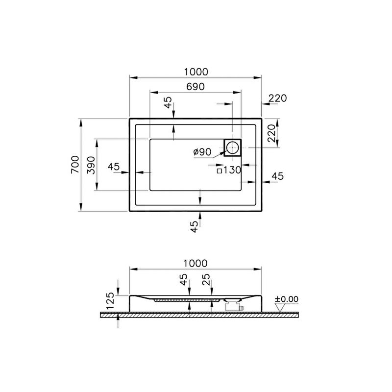 Vitra T Monoblok Duş Teknesi 100x70 cm (55040002000)
