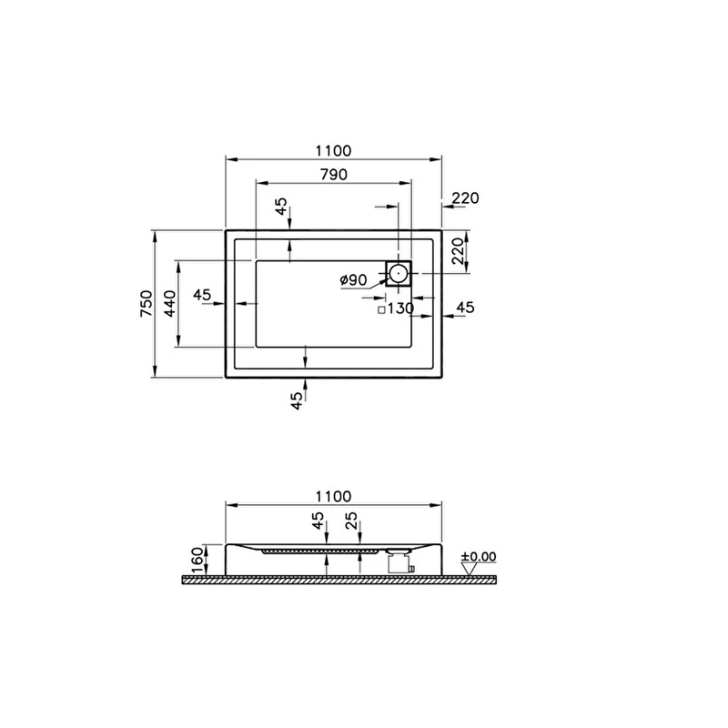 Vitra T Monoblok Duş Teknesi 110x75 cm (57100002000)