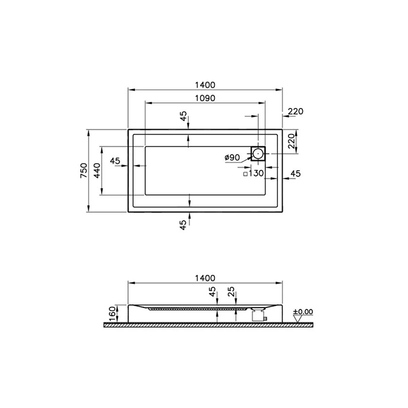 Vitra T Monoblok Duş Teknesi 140x75 cm (57160002000)