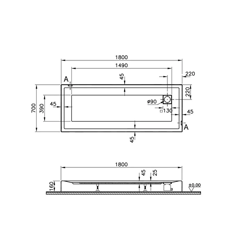 Vitra T Monoblok Duş Teknesi 180x70 cm (57010002000)