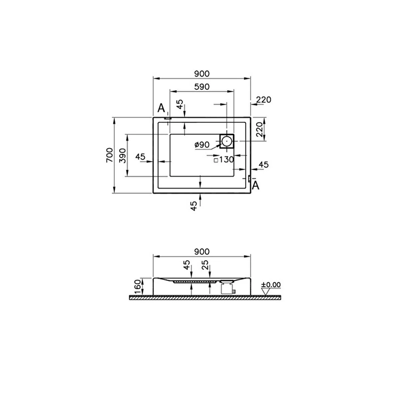 Vitra T Monoblok Duş Teknesi 90x70 cm (57030002000)