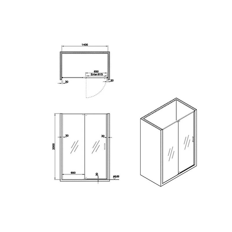 Vitra Üniversal Tek Sabit 1 Açılır Kapı Sefaf Duşakabin 140 cm Mat Siyah (65650002377)